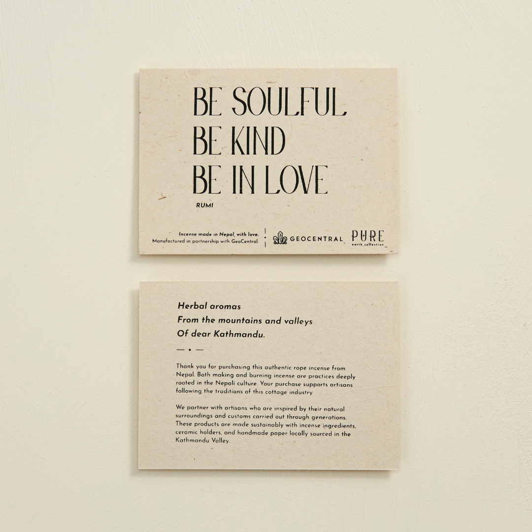 Incense is hand-bundled using natural materials and produce a sweet, woodsy aroma.